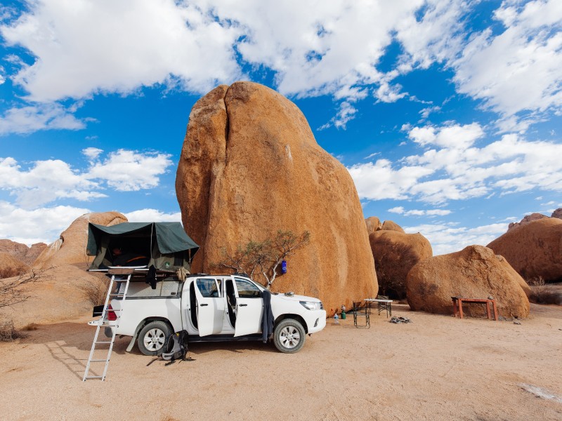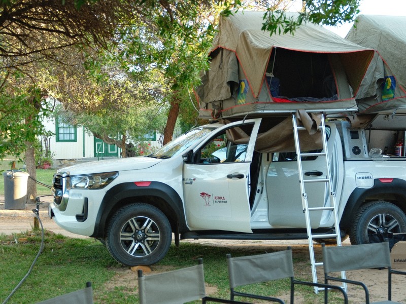 Übernachtet wird im Dachzelt auf einem Campingplatz mit gemeinschaftlichen Sanitäranlagen.