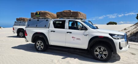 Übernachtung erfolgt im Dachzelt auf einem Campingplatz mit gemeinschaftlichen Sanitäranlagen – mitten in der Wildnis und unter dem funkelnden Sternenhimmel.