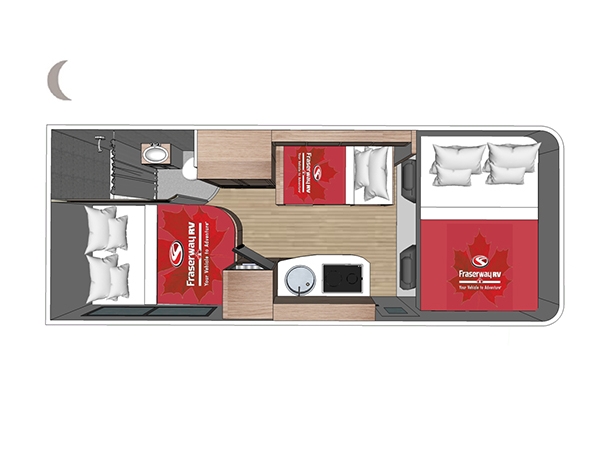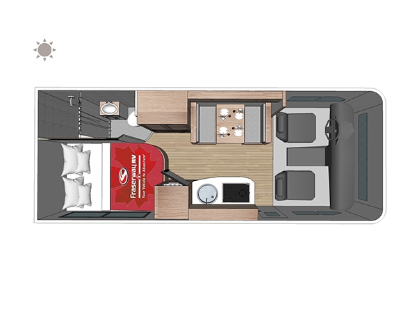 Das Fahrzeug beinhaltet alles, was man auf einem Abenteuer durch Kanada benötigt. Durch seine kompakte Einrichtung ist das Motorhome für bis zu vier Personen geeignet.