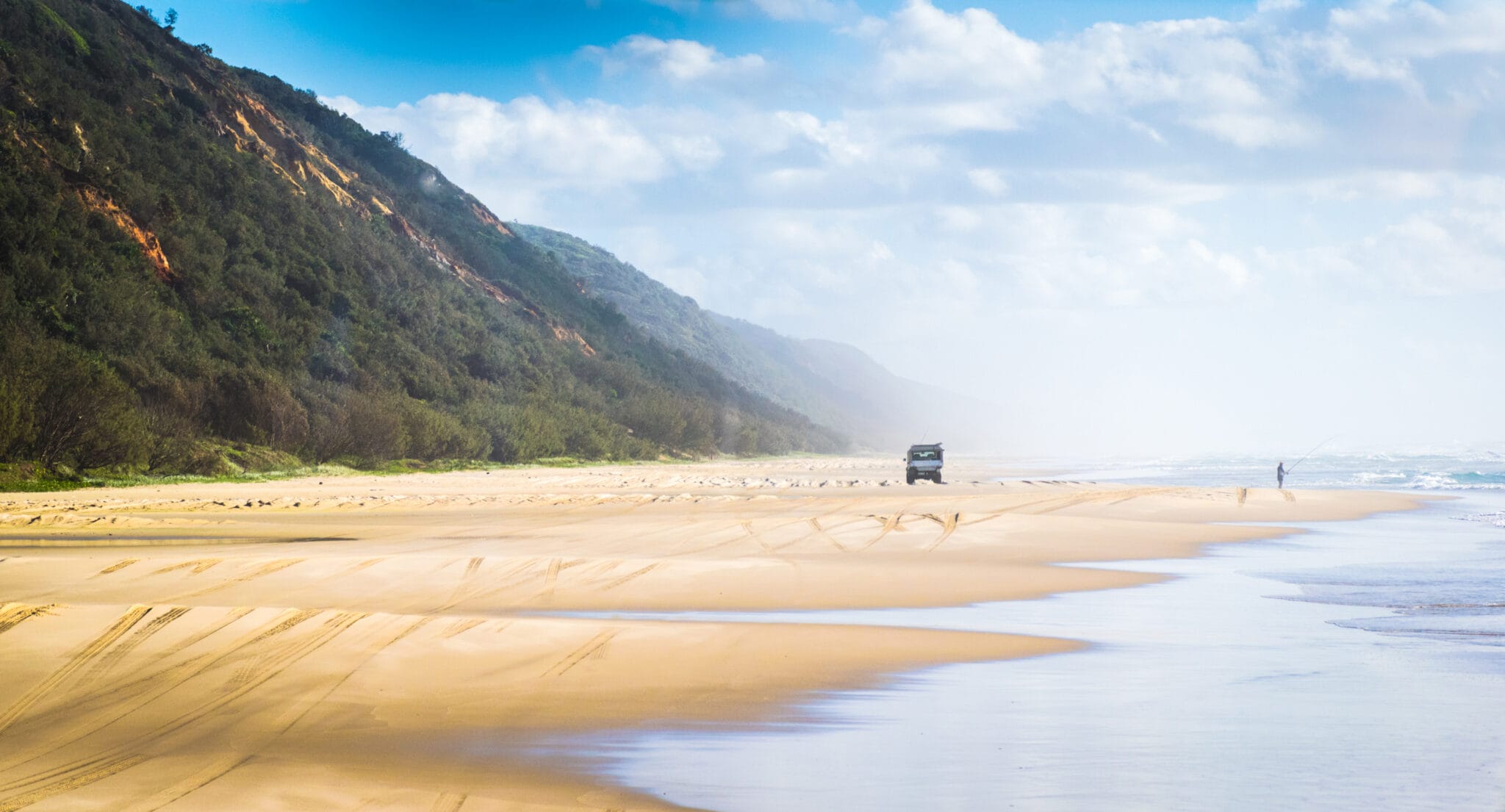 Ein Stück weiter nördlich befindet sich die Fraser Coast, die den Ausgangspunkt für einen Besuch der größten Sandinsel der Welt, K’gari (Fraser Island) darstellt. Von Hervey Bay setzen mehrmals täglich Fähren zu der Insel über, wo man per Geländewagen die farbigen Sandklippen erkunden, im Regenwald wandern, einheimische Tiere und Wale beobachten sowie in gold umrandeten Süßwasserseen baden kann. Die im Jahr 1992 zum UNESCO Welterbe erklärte Insel ist Teil des Great Sandy National Park, der in die zwei Areale Cooloola Recreation Area und K’gari unterteilt wird.