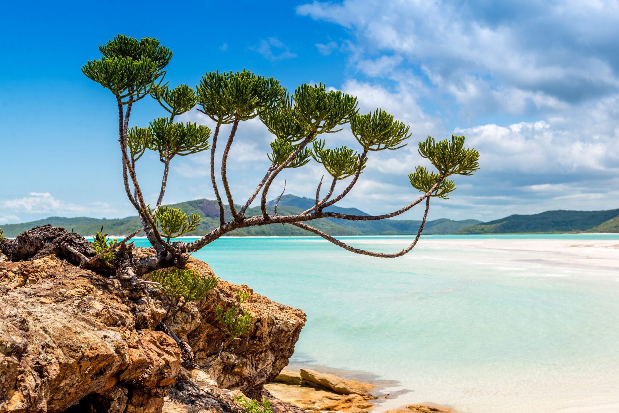Die berühmtesten Inseln sind die Whitsunday Islands, eine Inselgruppe bestehend aus 74 Inseln und nur wenige Kilometer vom Festland entfernt gelegen. Mit ihren einsamen, Palmen-gesäumten, vom klaren, blauen Wasser umspülten, weißen Sandstränden verkörpern die Whitsunday Islands den Inbegriff vom Tropenparadies. Der beliebteste Strand ist der Whitehaven Beach, dessen Sand zu 98 Prozent aus Quarz besteht und so weiß ist, dass er fast unwirklich erscheint. Der Strand liegt auf der unbewohnten Insel Whitsunday Island und kann nur per Wasserflugzeug, Helikopter oder Boot erreicht werden.