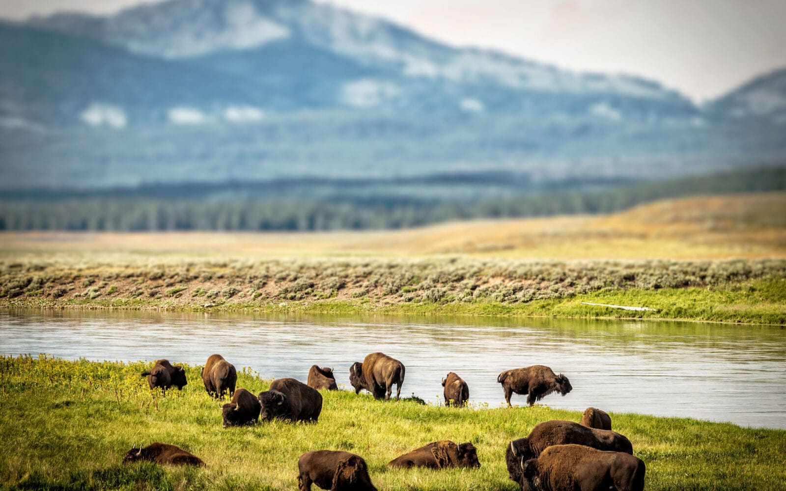 Yellowstone beeindruckt mit Geysiren, heißen Quellen, wilden Tieren und einer einzigartigen Vulkanlandschaft. Der Park erstreckt sich über Teile von Wyoming, Montana und Idaho und ist berühmt für Naturwunder wie den Geysir „Old Faithful“ und die farbenprächtige Grand Prismatic Spring. Hier leben Bisons, Wölfe, Elche und Bären in freier Wildbahn. Die Landschaft ist geprägt von geothermaler Aktivität, tiefen Schluchten und weiten Ebenen. Besucher können wandern, campen oder einfach die Natur bestaunen.